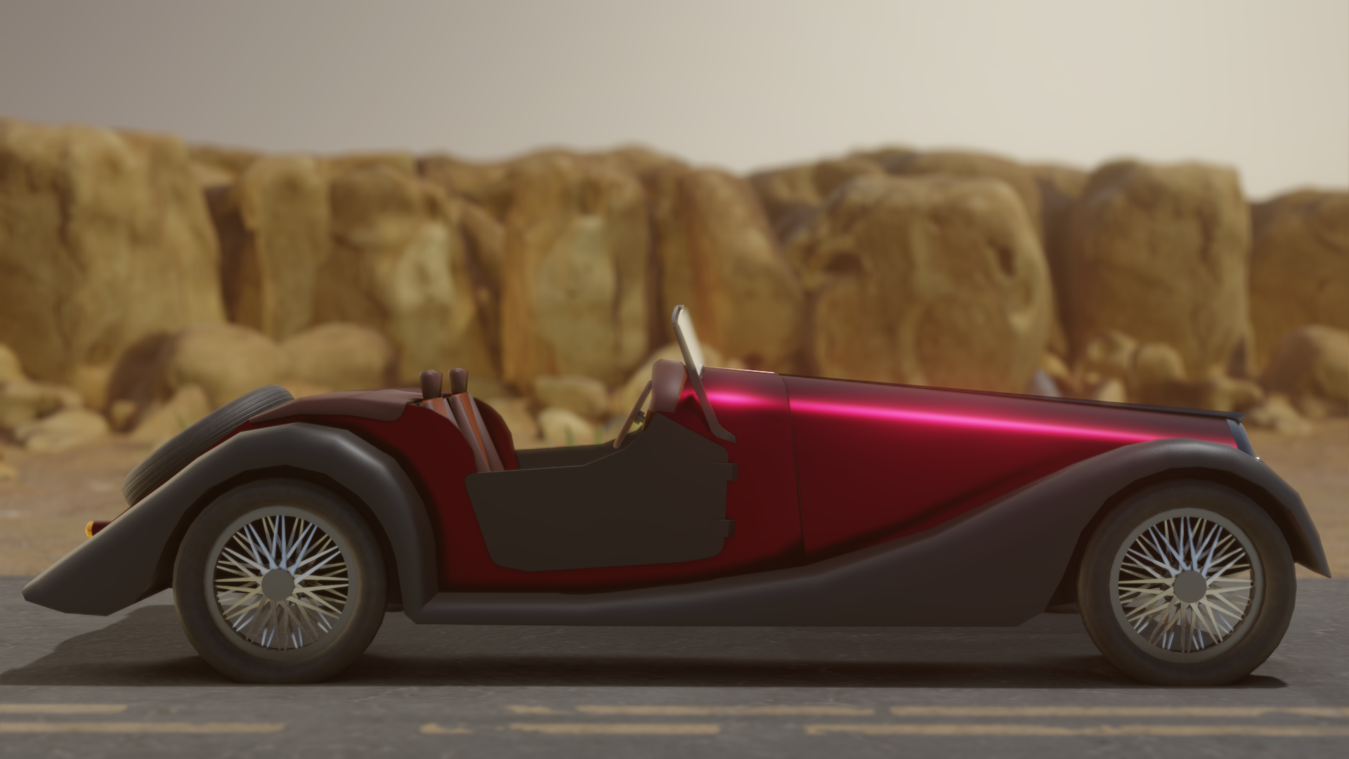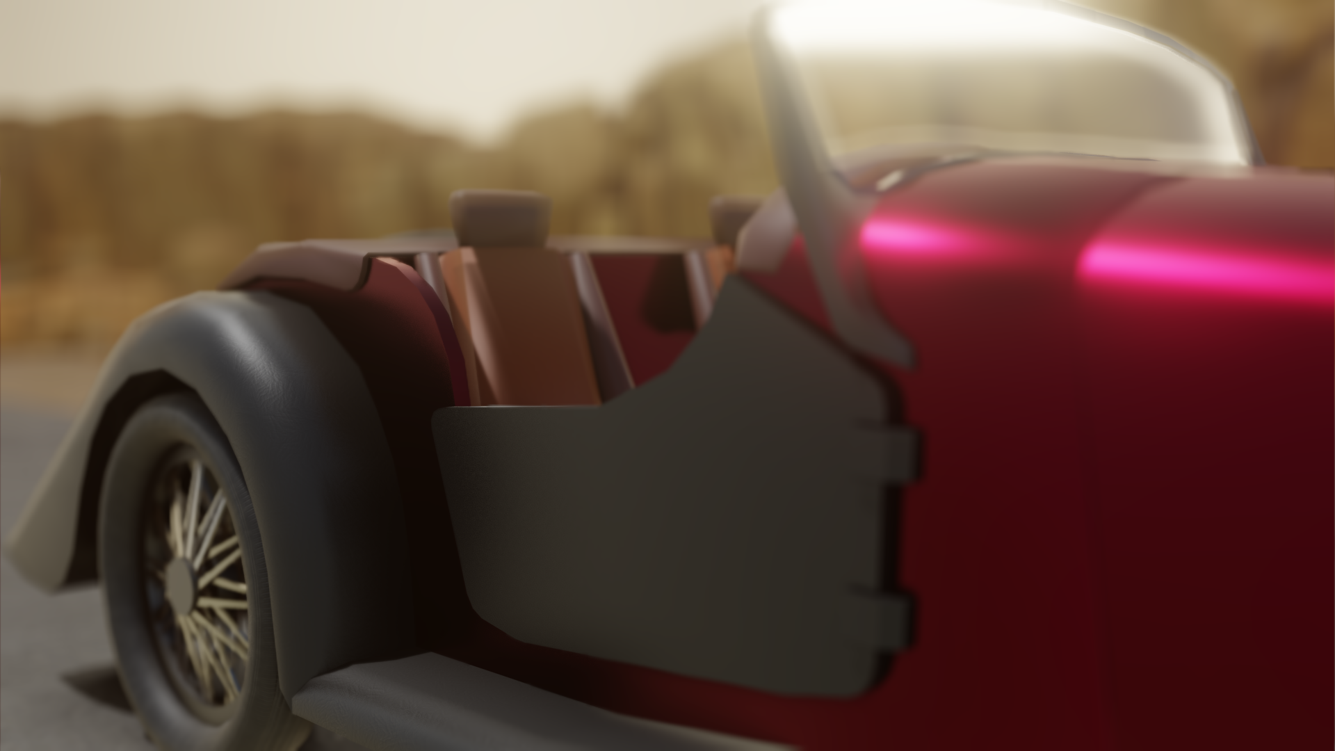 The Morgan 4/4 is a British motor car which has been produced by the Morgan Motor Company since 1936. This car served as inspiration to the making of this model. I tried to make a simple car without to many details, leaving it to his bare bones.